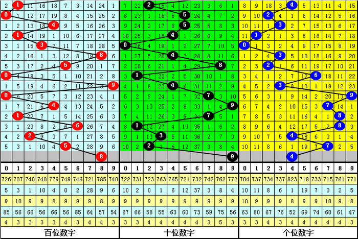 在第310期历史同期开奖中,号码0-9出现频次从高到低分别为:号码7→14次;号码4→8次;号码5、9→7次;号码8→6次;号码1、3→5次;号码2、6→3次;号码0→2次。一般来说,表现最热的号码:4579中至少出现1个奖号。同时奖号不会全部出现在表现最冷的号码中。