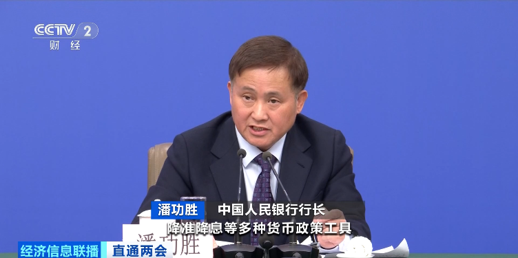 总台央视记者 金荷淼:中国人民银行行长潘功胜在记者会上表示,当前社会综合融资成本低位运行,信贷结构持续优化,科技、绿色、普惠、养老、数字等领域贷款保持两位数增长。