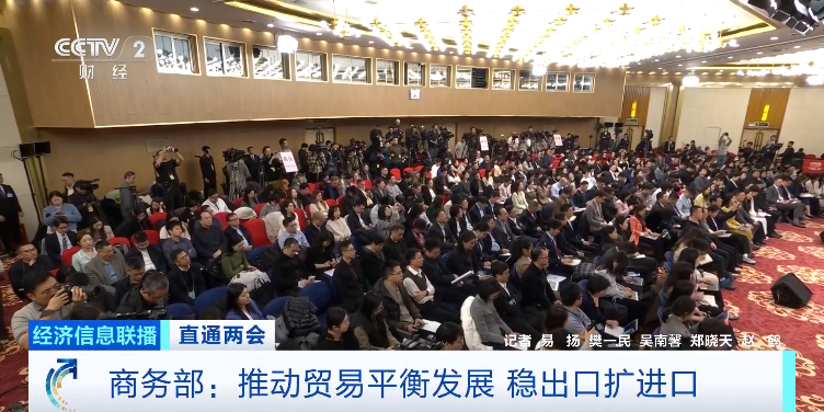 记者会上,针对贸易顺差相关问题,王文涛表示,将推动贸易平衡发展,在稳出口的同时扩进口。