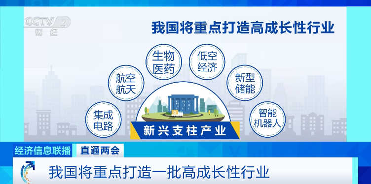 总台央视记者 平凡:国家发展改革委主任郑栅洁6日在全国两会记者会上,首次提出我国将重点打造一批高成长性行业,包括新兴支柱产业和未来产业,将形成数个万亿级甚至更大规模的市场,成为高质量发展的新引擎。